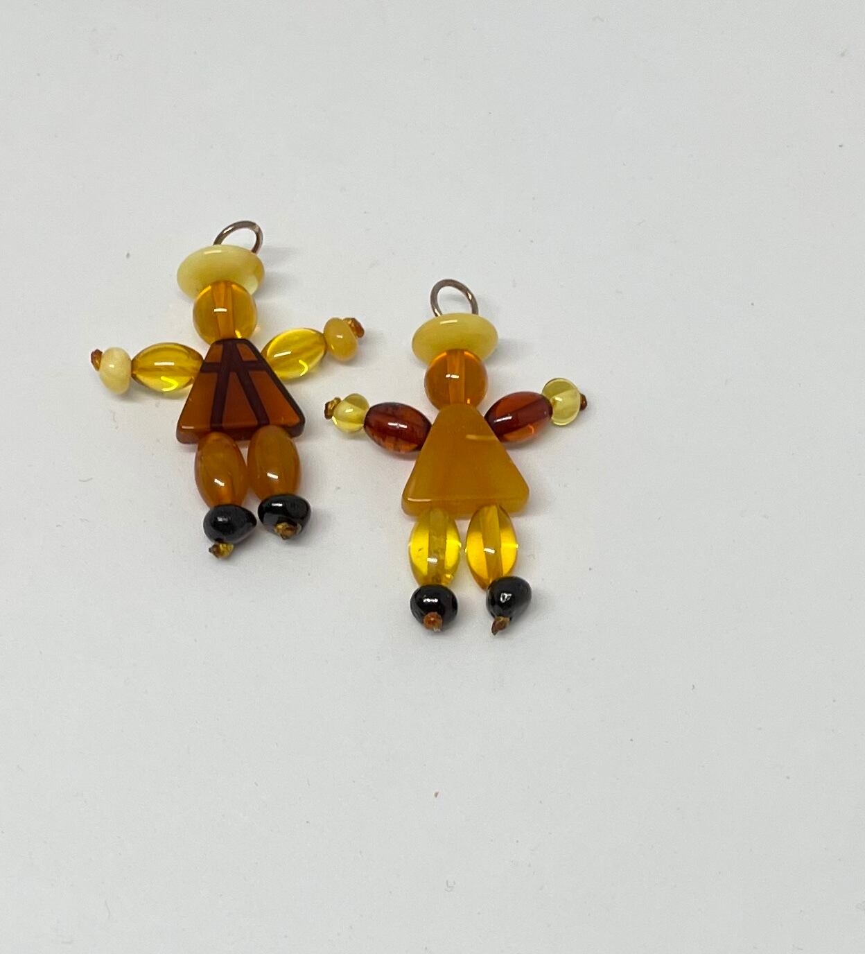 琥珀のパーツを繋いで、天使と人形が作られています。ペンダントトップです、