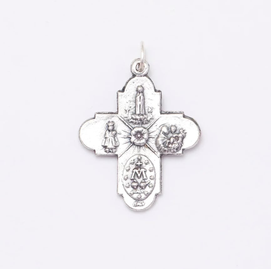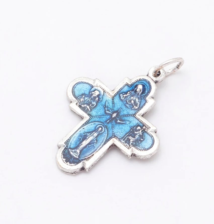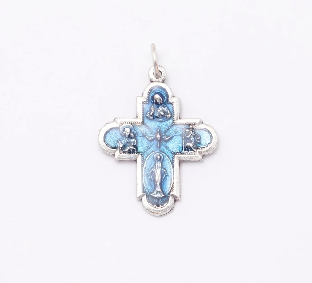 メタルのフォーウェイクロスにブルーのエナメルを重ねて,優雅さを表しています。